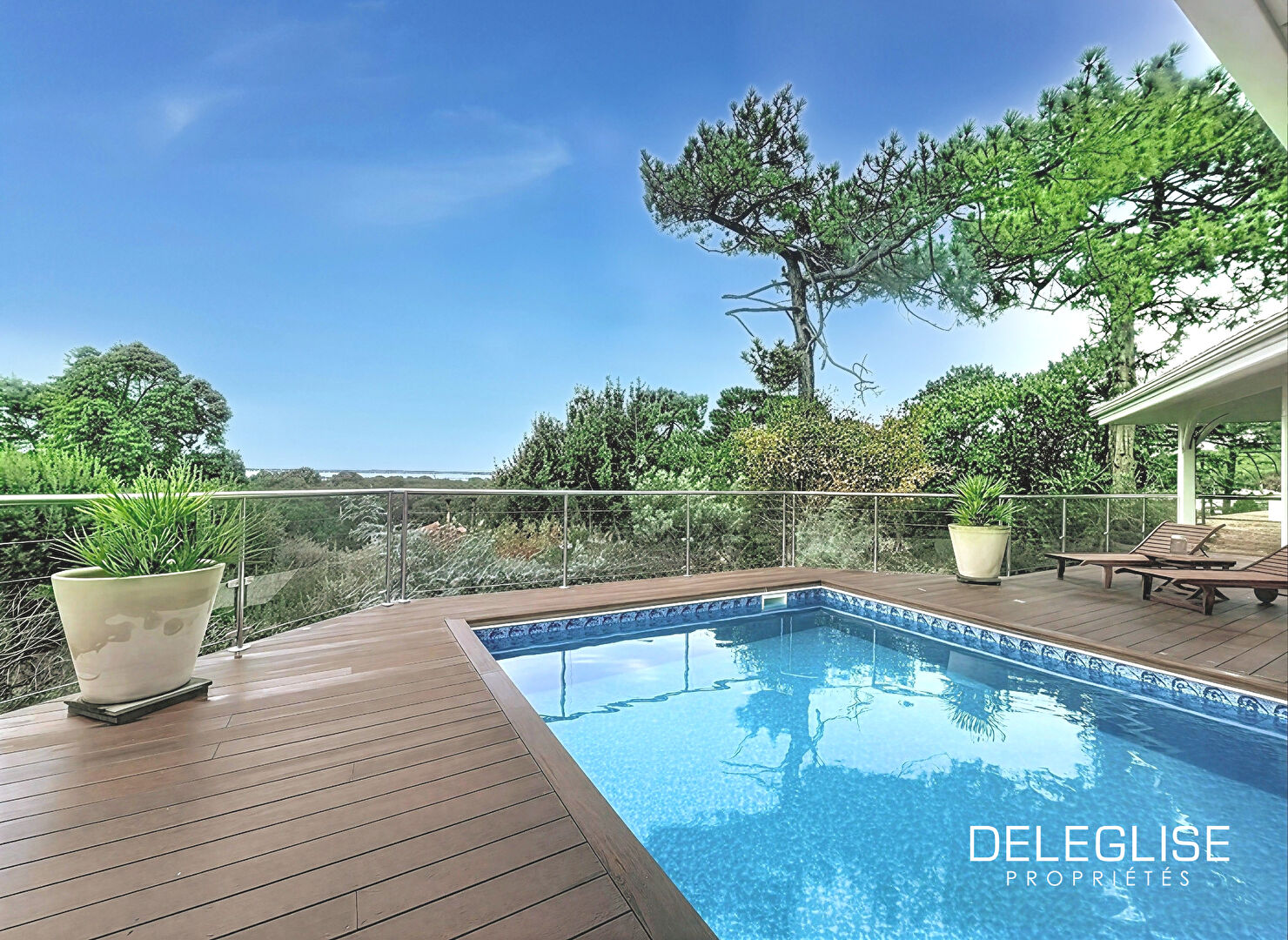DELEGLISE PROPRIÉTÉS, votre agence spécialisée en immobilier de charme et d’exception, vous propose cette villa idéalement située en position dominante, dans l’un des secteurs les plus recherchés de Pyla sur Mer. D’une superficie d’environ 298 m², la maison s’organise sur trois niveaux et offre de belles vues sur le Bassin d’Arcachon depuis les pièces principales et les terrasses. Elle se trouve sur un terrain arboré de 1 025 m², avec piscine orientée vers le Bassin. Le niveau principal comprend un triple séjour lumineux ouvrant sur la terrasse avec piscine et vue dégagée, une cuisine américaine équipée, trois chambres, 2 salles d’eau et des toilettes. A l’étage supérieur, une suite parentale comprend une chambre avec vue, une salle de bain, un dressing, une mezzanine et une terrasse privative. Le rez-de-jardin accueille trois chambres supplémentaires, une cuisine indépendante, deux salles d’eau, des toilettes et une buanderie. Un garage de plus de 50 m² permet de stationner jusqu’à trois véhicules. Plusieurs emplacements extérieurs complètent l’ensemble. La maison dispose de prestations actuelles : double vitrage, climatisation réversible, nombreux rangements, deux terrasses bien exposées et de bonnes performances énergétiques (DPE : C). Accès rapide aux plages, au Cercle de Voile et aux commerces de proximité. Les informations sur les risques auxquels ce bien est exposé sont disponibles sur le site Géorisques : www.georisques.gouv.fr (3.08 % honoraires TTC à la charge de l’acquéreur.)